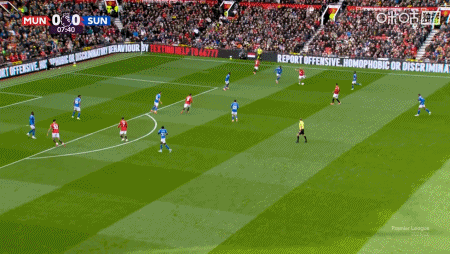 第26分钟B费大禁区前沿原地摆腿兜射,可惜运气不佳,皮球击中横梁被弹出,不过5分钟之后,曼联就扩大了领先优势,达洛特大力手抛球,造成桑德兰禁区一片混乱,舍什科门前抢点建功,将比分改写为了2-0,半场结束前,舍什科本方禁区防守时抬脚过高,踢到了进攻球员,但主裁回看VAR后并没有吹罚点球。